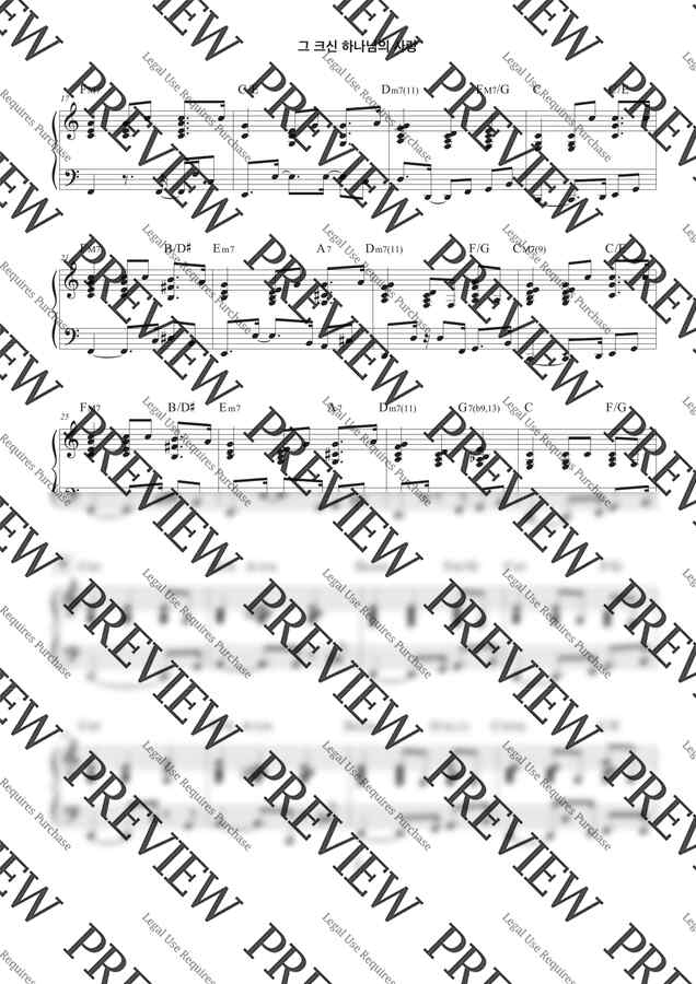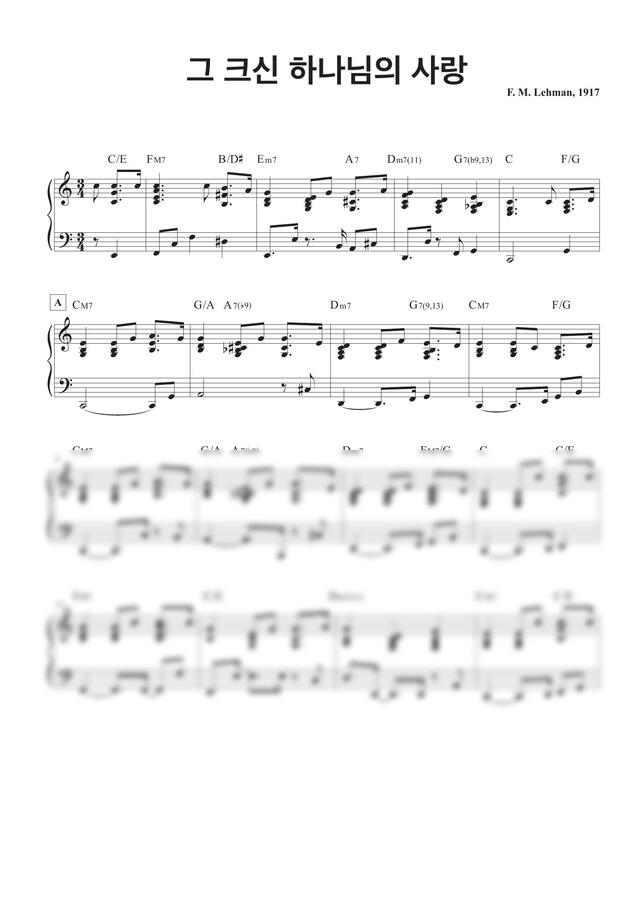 304장 그 크신 하나님의 사랑 입니다. 3/4박자 악보 그대로의 리듬으로 반주 및 연주를 했고. 셋잇단음표를 써서 9/8박자 리듬으로 바꿔서 연주해 보았습니다. 교회마다 부르는 방식이 조금씩 다를 것 같아서 따로 작업했습니다. 반주 하시는 데 도움이 되시길 바랍니다.