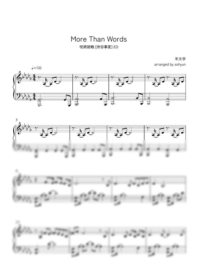Piano sheet music of “more than words,” the Jujutsu Kaisen Shibuya Incident ED.