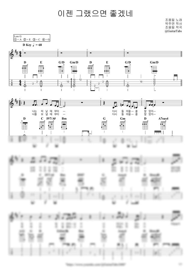 G Key / 3p / 2단(노래+반주) / 5선(Staff) / 타브(TAB) / 가사(Lyrics) / 코드(Chords)