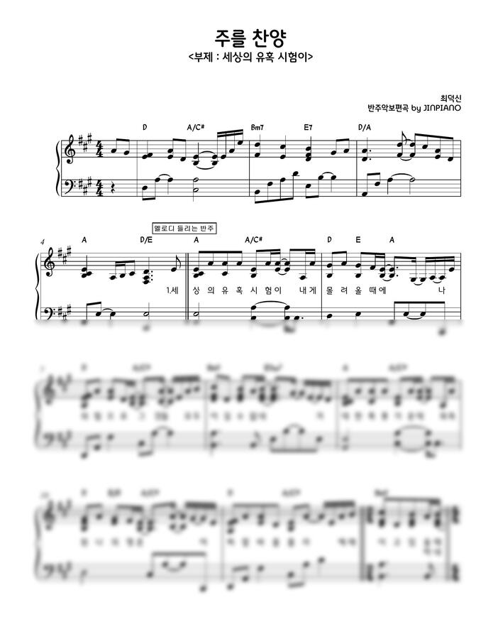 최덕신 - 주를 찬양(세상의 유혹 시험이) A key (멜로디반주+코드반주) by JINPIANO