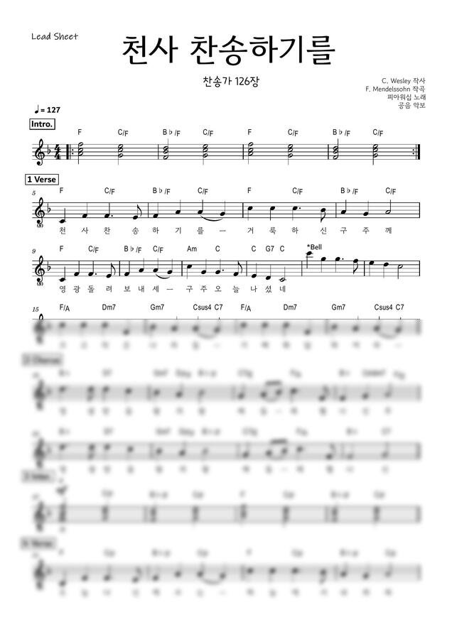 피아워십ver. - 천사 찬송하기를(리드시트 E/F/G)