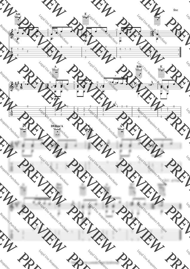 Am Key / 2p / 1단(솔로) / 5선(Staff) / 타브(TAB) / 운지(Fingering) / 코드(Chords)