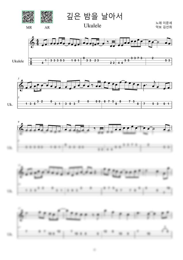 이문세 - 깊은 밤을 날아서 (우쿨렐레 멜로디) by 김선희
