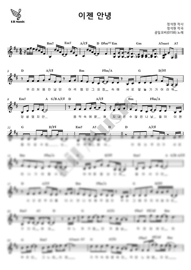 015B(공일오비) - 이젠 안녕 / 멜로디 악보입니다.