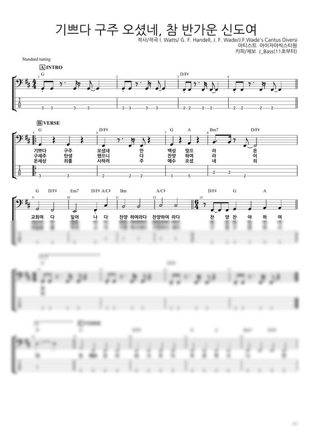 아이자야씩스티원의 기쁘다 구주 오셨네 & 참 반가운 신도여 베이스기타 쉬운버전 악보입니다.