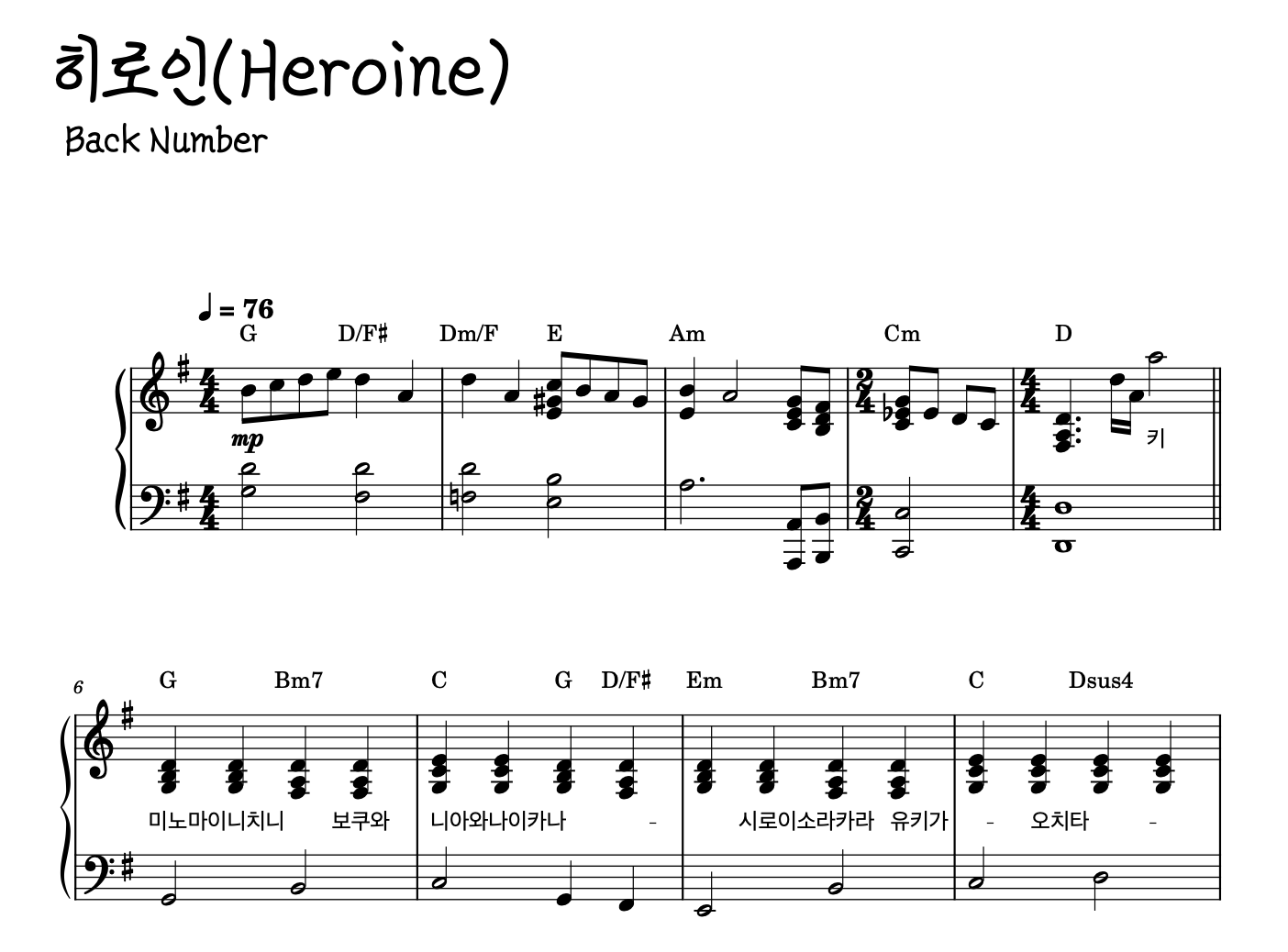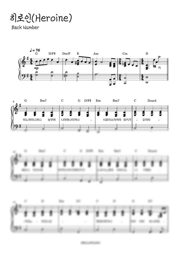 12) back number - 히로인(ヒロイン) : https://www.mapianist.com/sheet/152357