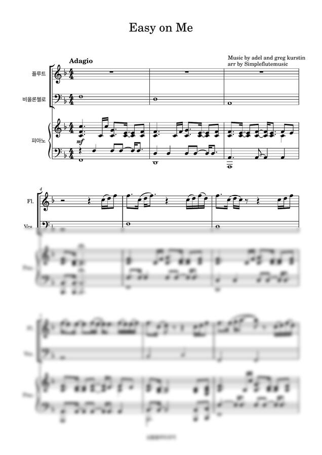 Easy on me-[플루트][첼로][피아노][성인 취미 연주곡]