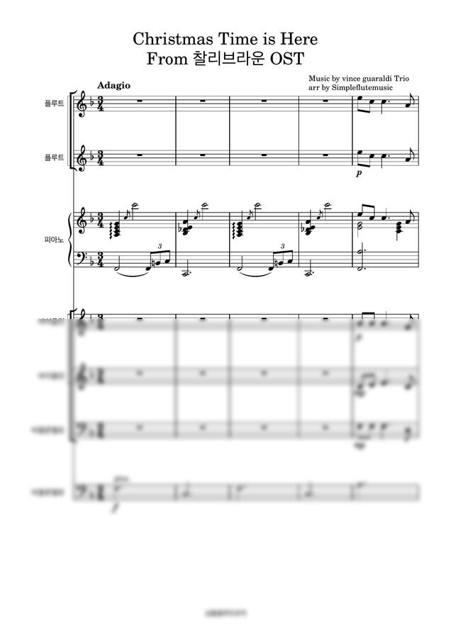 찰리 브라운 OST - Christmas time is here-[플루트][바이올린][첼로][피아노][연말 행사 음악]