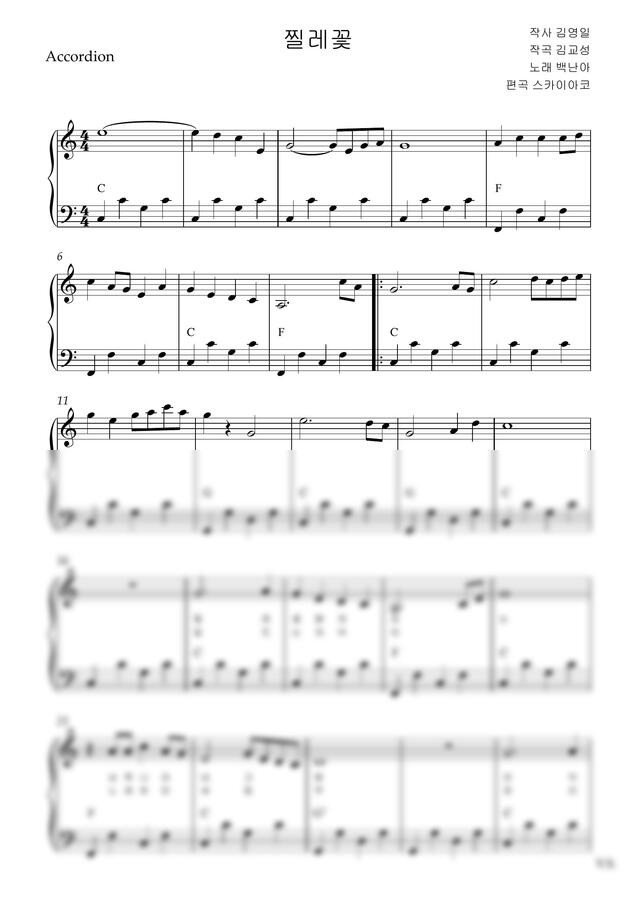 백난아 - 찔레꽃 (아코디언악보, 난이도 초급) by 스카이아코