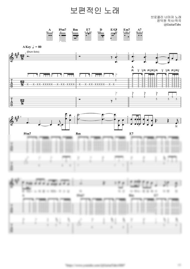 A Key / 5p / 3단(노래+반주+솔로) / 5선(Staff) / 타브(TAB) / 가사(Lyrics) / 코드(Chords)
