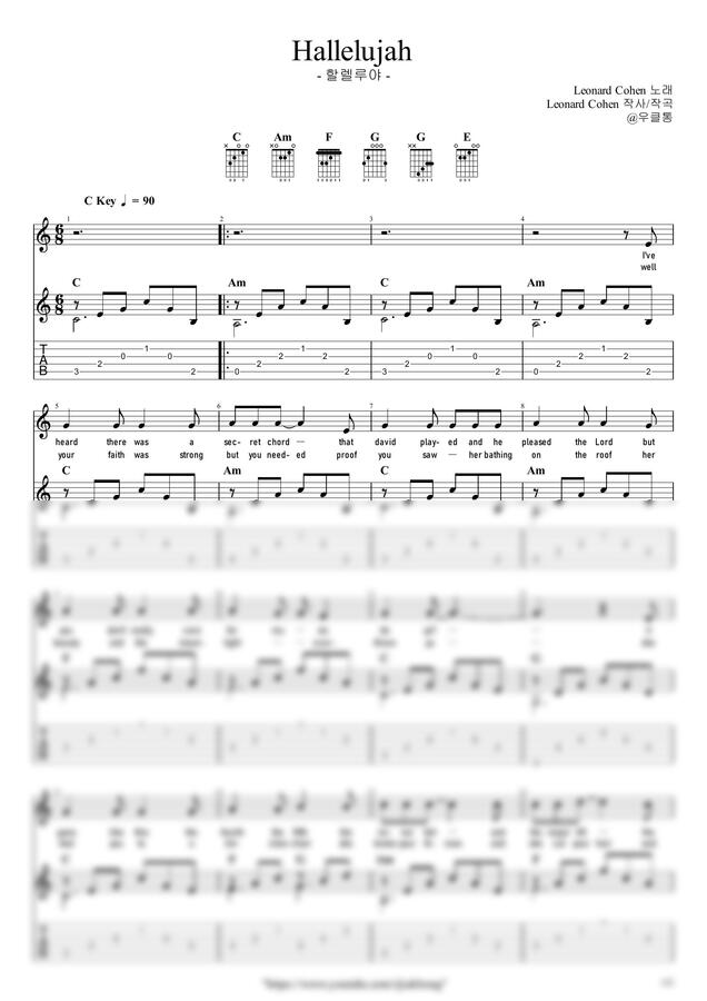 * 통#0026(초)Hallelujah-Leonard Cohen-C-2p *