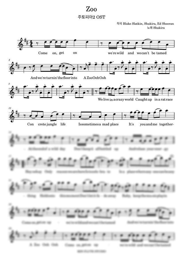 Shakira - Zoo(주토피아2 OST) (Only Flute) by 민플루트스튜디오0