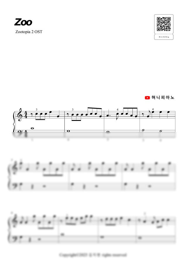 샤키라 - Zoo (주토피아 2 OST) (바이엘, 매우 쉬운) by 혀니피아노