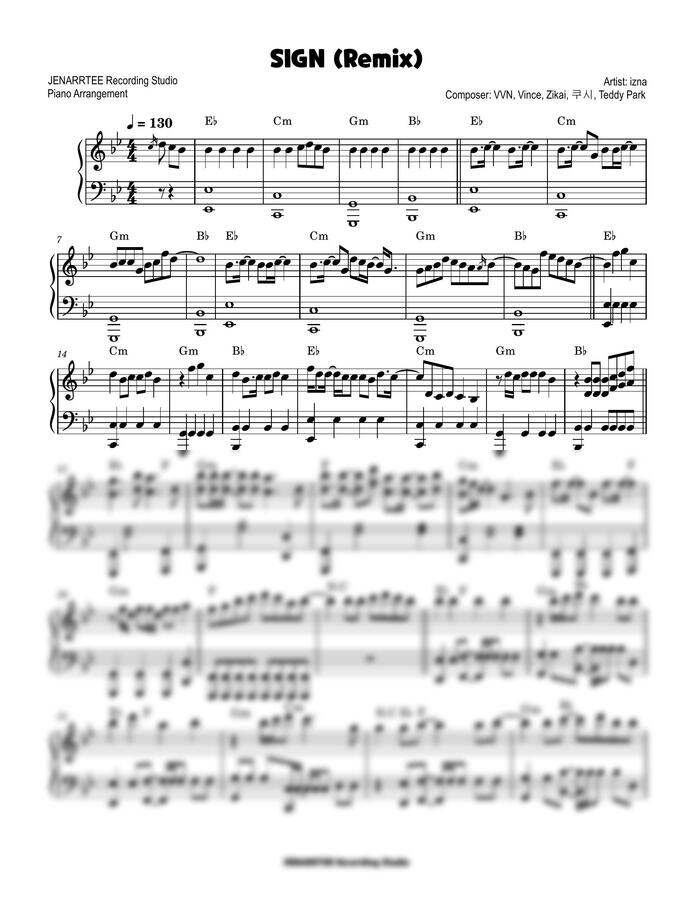 이즈나 'SIGN (리믹스)' 피아노 악보.
