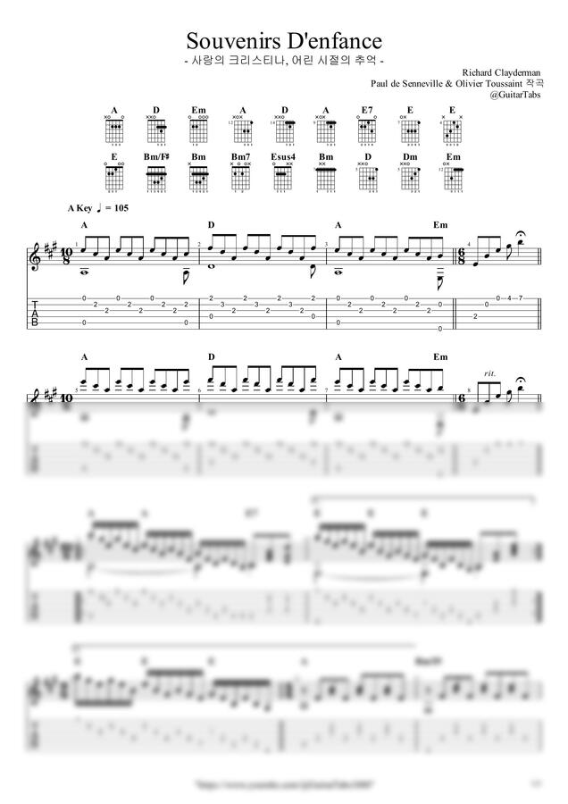 A Key / 3p / 1단(솔로) / 5선(Staff) / 타브(TAB) / 코드(Chords)