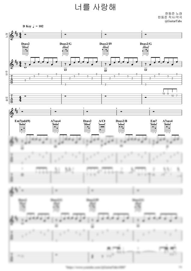 D Key / 6p/ 3단(노래+반주+솔로) / 5선(Staff) / 타브(TAB) / 가사(Lyrics) / 코드(Chords)