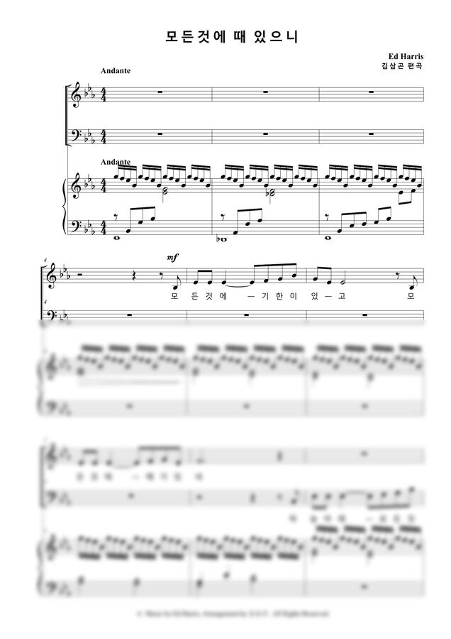 우리 삶의 모든 순간마다 정해진 하늘의 때가 있다는 성경 전도서의 귀한 메시지를 Ed Harris의 유려한 선율과 김삼곤 작곡가의 따뜻하고 섬세한 편곡으로 그려내어, 인생의 계절을 지나는 모든 이들에게 평온한 안식과 깊은 울림을 선사하는 곡입니다."