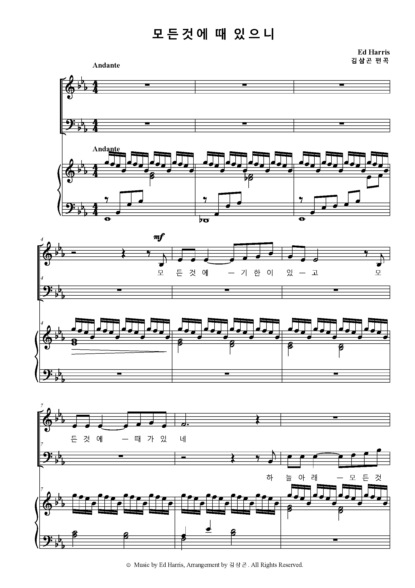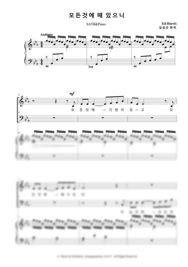 우리 삶의 모든 순간마다 정해진 하늘의 때가 있다는 성경 전도서의 귀한 메시지를 Ed Harris의 유려한 선율과 김삼곤 작곡가의 따뜻하고 섬세한 편곡으로 그려내어, 인생의 계절을 지나는 모든 이들에게 평온한 안식과 깊은 울림을 선사하는 곡입니다."