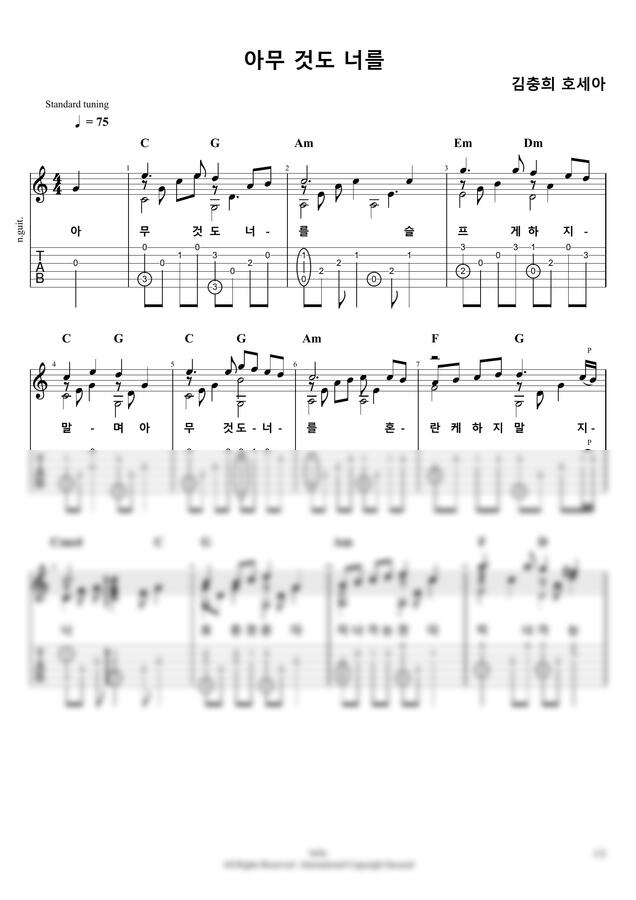많이 사랑받는 생활성가 "아무것도 너를"을 기타솔로로 커버해 보았습니다.