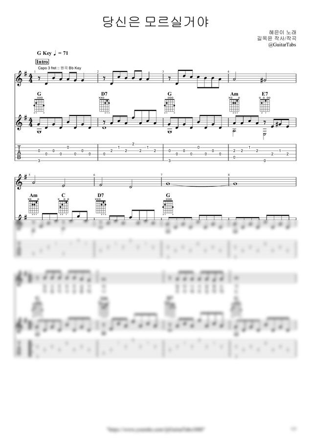G Key / 3p/ 2단(노래+반주) / 5선(Staff) / 타브(TAB) / 가사(Lyrics) / 코드(Chords)