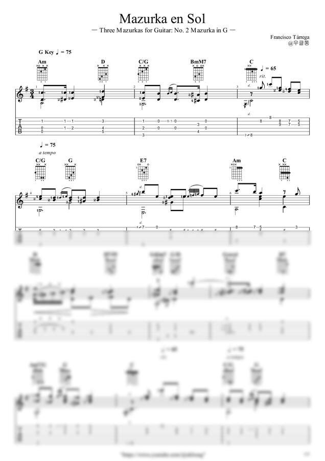 * 클#0027(중)Mazurka in G(Mazurka No.2)-F. Tarrega-G-3p *