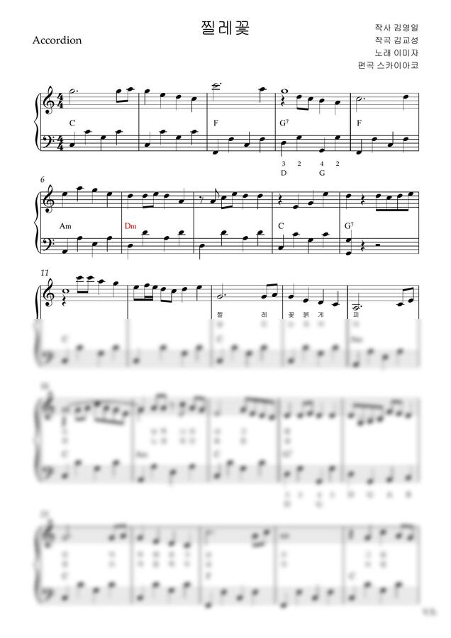 이미자 - 찔레꽃(아코디언악보, 난이도 고급, C key) by 스카이아코