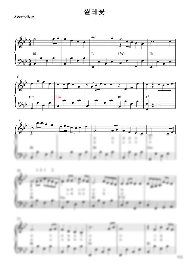 이미자 - 찔레꽃(아코디언악보, 난이도 고급, Bb key) by 스카이아코
