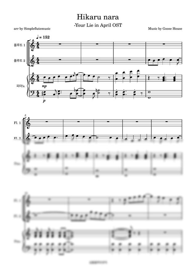 4월은 너의 거짓말 OST - 빛이 난다면-[플루트][피아노][발표곡]