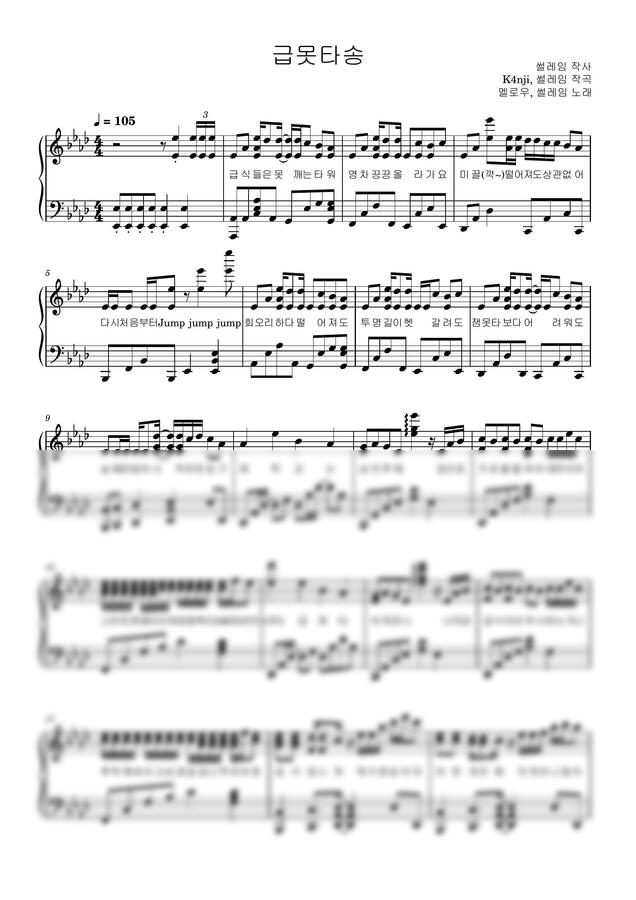 멜로우TV "급못타송"(feat. 썰레임) 피아노 악보입니다!