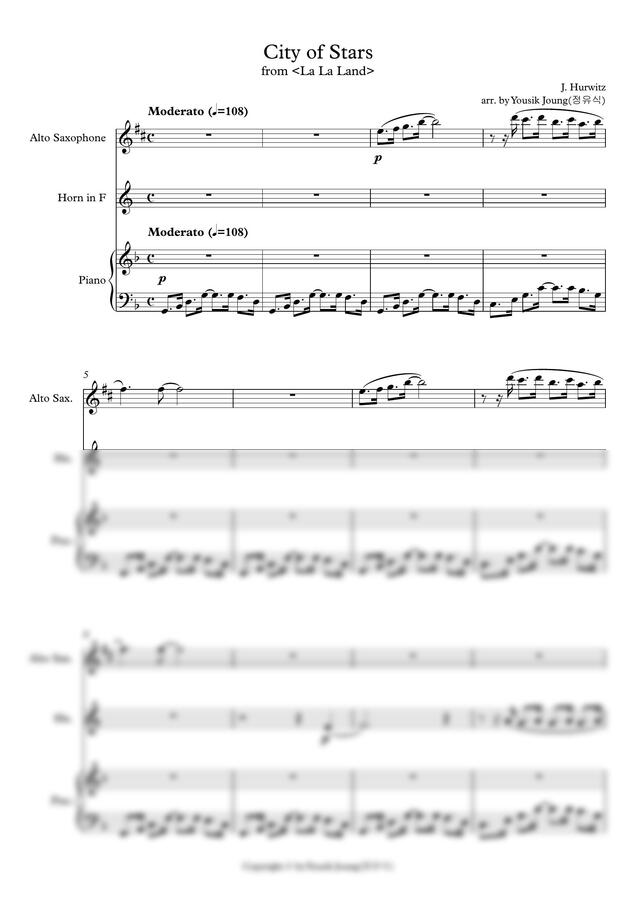 저스틴 허위츠 - City of Stars (영화 라라랜드 OST) (피아노 3중주(알토색소폰, 호른, 피아노)) by 정유식1