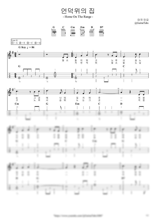 G Key / 2p / 2단(노래+반주) / 5선(Staff) / 타브(TAB) / 가사(Lyrics) / 코드(Chords)