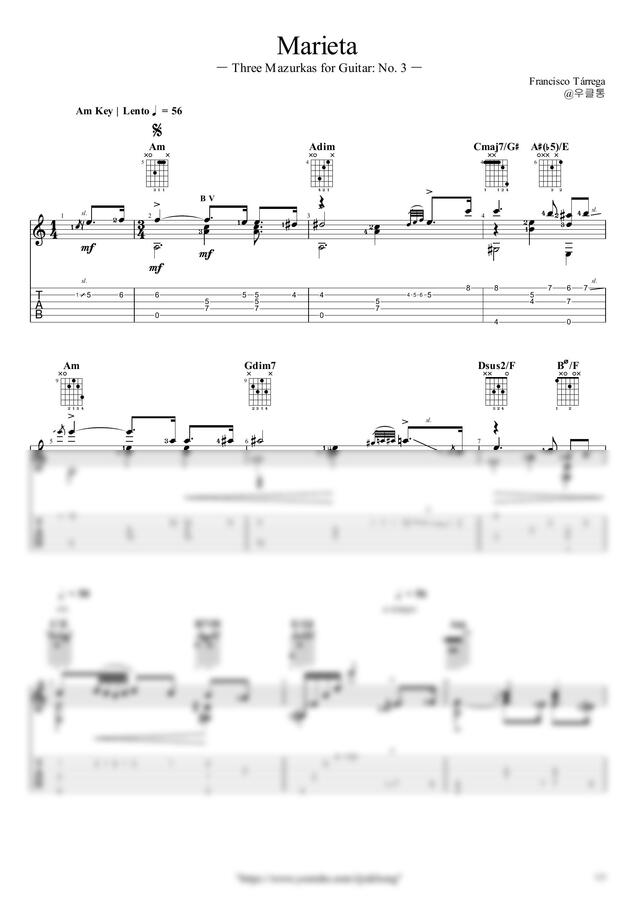 * 클#0028(중)Marieta(Mazurka No.3)-F. Tarrega-Am-3p *