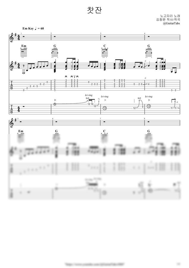 Em Key / 4p/ 3단(노래+반주+솔로) / 5선(Staff) / 타브(TAB) / 가사(Lyrics) / 코드(Chords)
