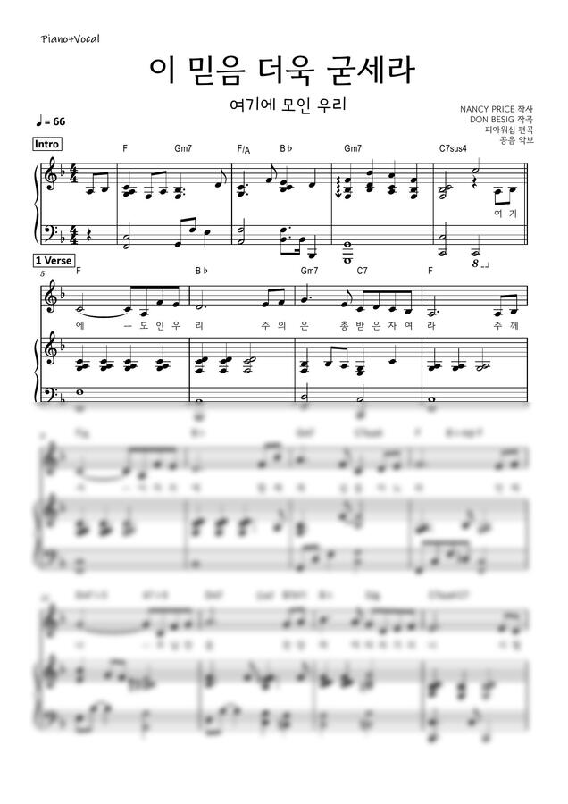 피아워십ver. - 이 믿음 더욱 굳세라/여기에 모인 우리(메인건반 F/G키)