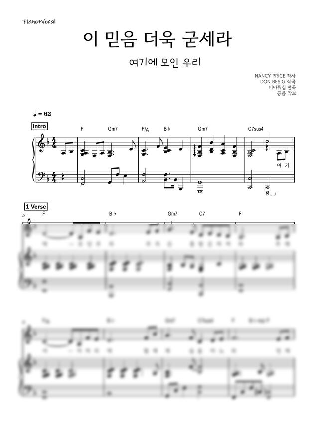 피아워십ver. - 이 믿음 더욱 굳세라/여기에 모인 우리(메인건반 F/G키)