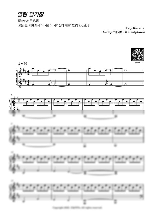오늘 밤, 세계에서 이 사랑이 사라진다 해도 OST 중 인기 악보 모음(총 6곡)을 준비했어요!