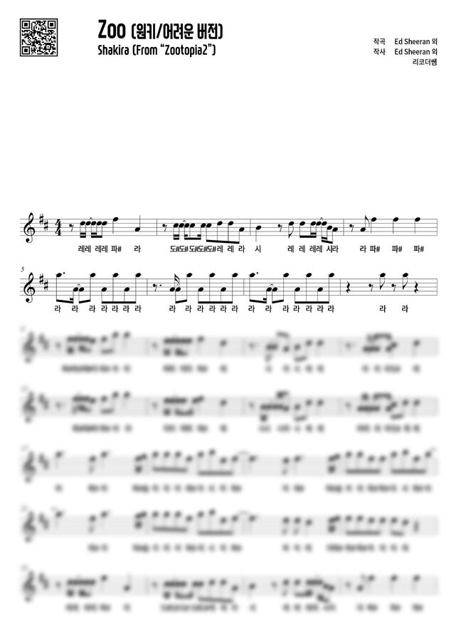 주토피아2 OST - ZOO (계이름, 어려운버전) by 리코더쌤