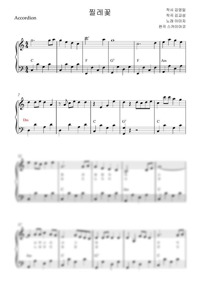 이미자 - 찔레꽃 (아코디언악보, 난이도 중급) by 스카이아코