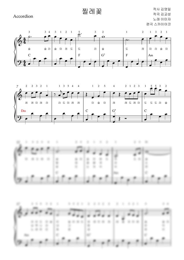 이미자 - 찔레꽃 (아코디언악보, 난이도 중급, 계이름, 손가락번호) by 스카이아코