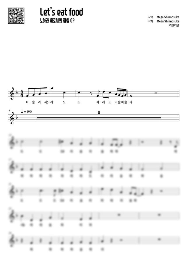 노하라 히로시의 점심 OP - Let's eat food (계이름) by 리코더쌤