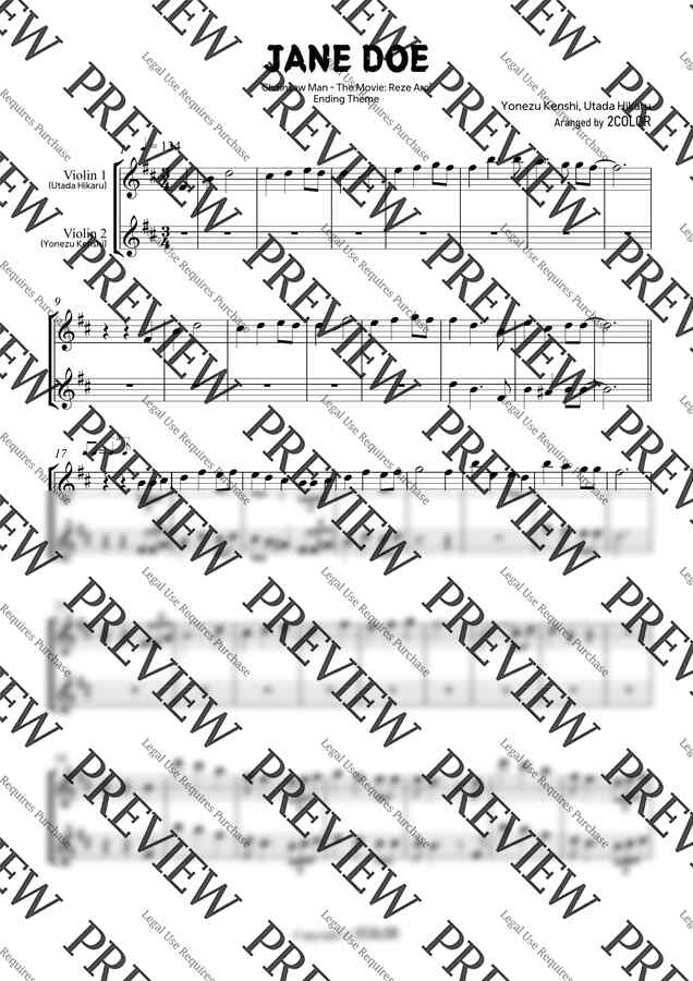 체인소맨 레제 OST | 「JANE DOE」– Kenshi Yonezu, Hikaru Utada 🎻 FOR TWO VIOLINS By 2COLOR