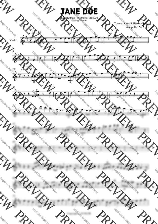 체인소맨 레제 OST | 「JANE DOE」– Kenshi Yonezu, Hikaru Utada 🎻 FOR VIOLIN SOLO By 2COLOR