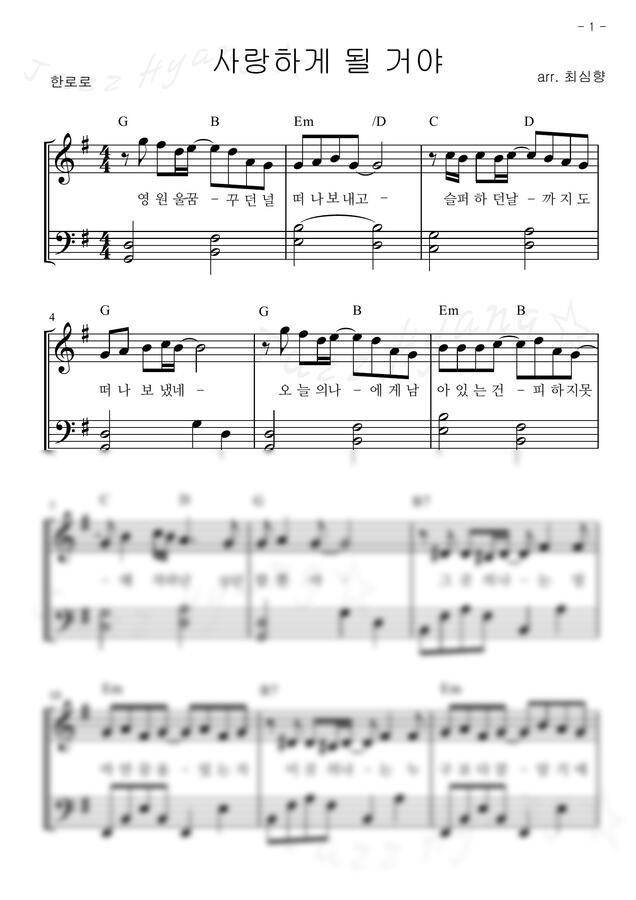 한로로 - 사랑하게 될 거야 (G키, 멜로디 악보) https://www.mapianist.com/sheet/153669