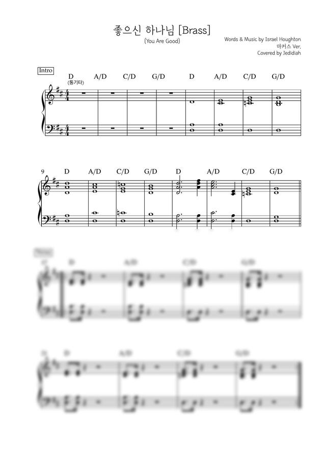 이 악보는 두 키 낮춘 D키 입니다.