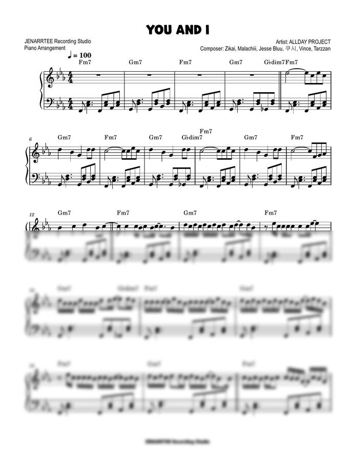 올데이 프로젝트 'YOU AND I' 피아노 악보.
