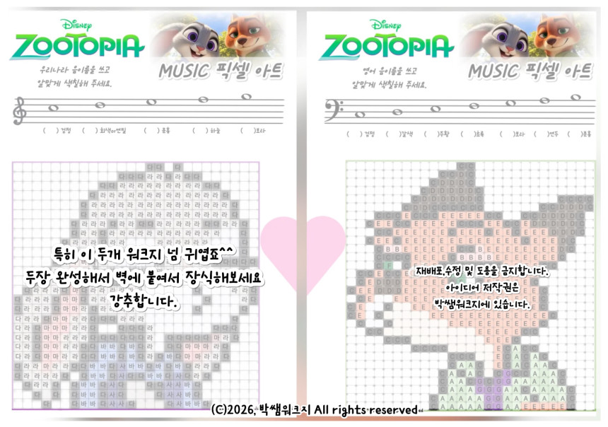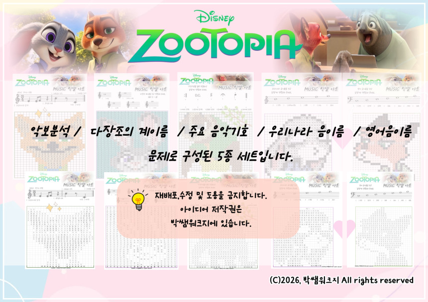 음악워크지 - 주토피아 뮤직픽셀 5종세트 by 박쌤