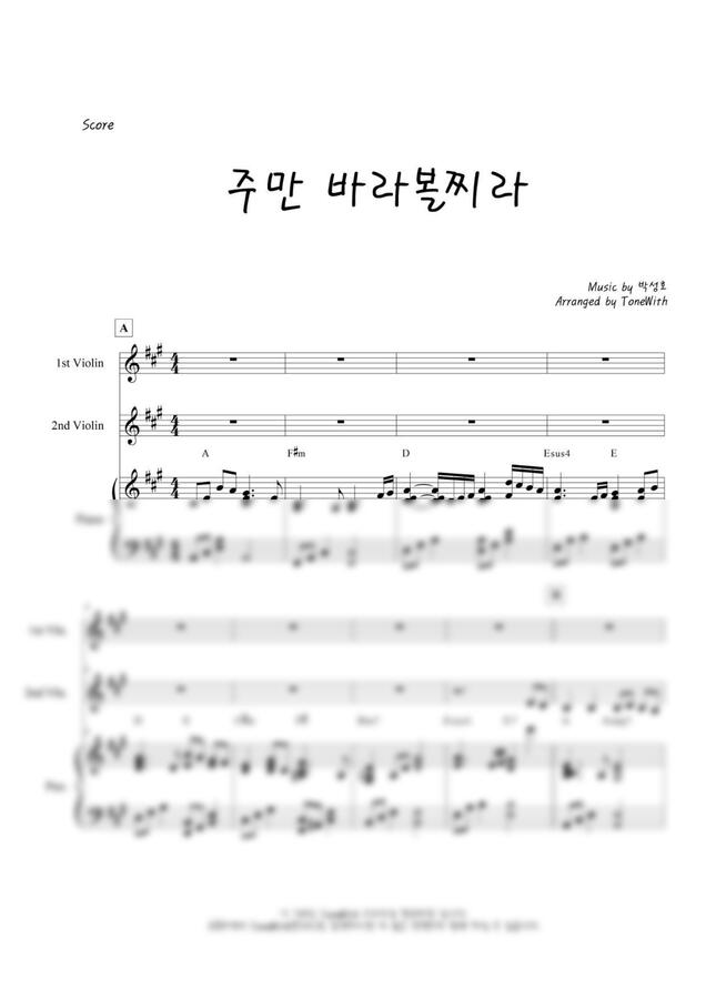 +)악보는 스코어와 피아노 1st,2nd Violin 파트보로 구성되어 있습니다.