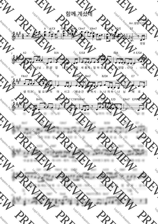 박에셀 - 함께 계셨네 (A key멜로디악보) by 생명의건반