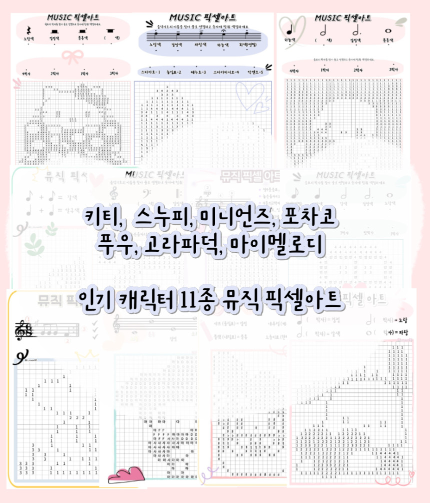 음악워크지 - 인기캐릭터 뮤직 픽셀아트 11종세트 (이론워크지) by 박쌤