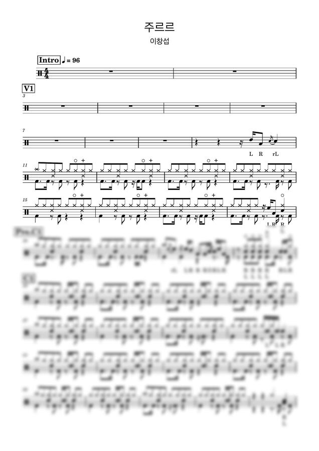 이창섭 - 주르르 (드럼악보) by Drummer KWI